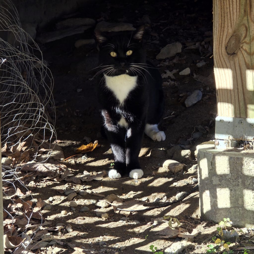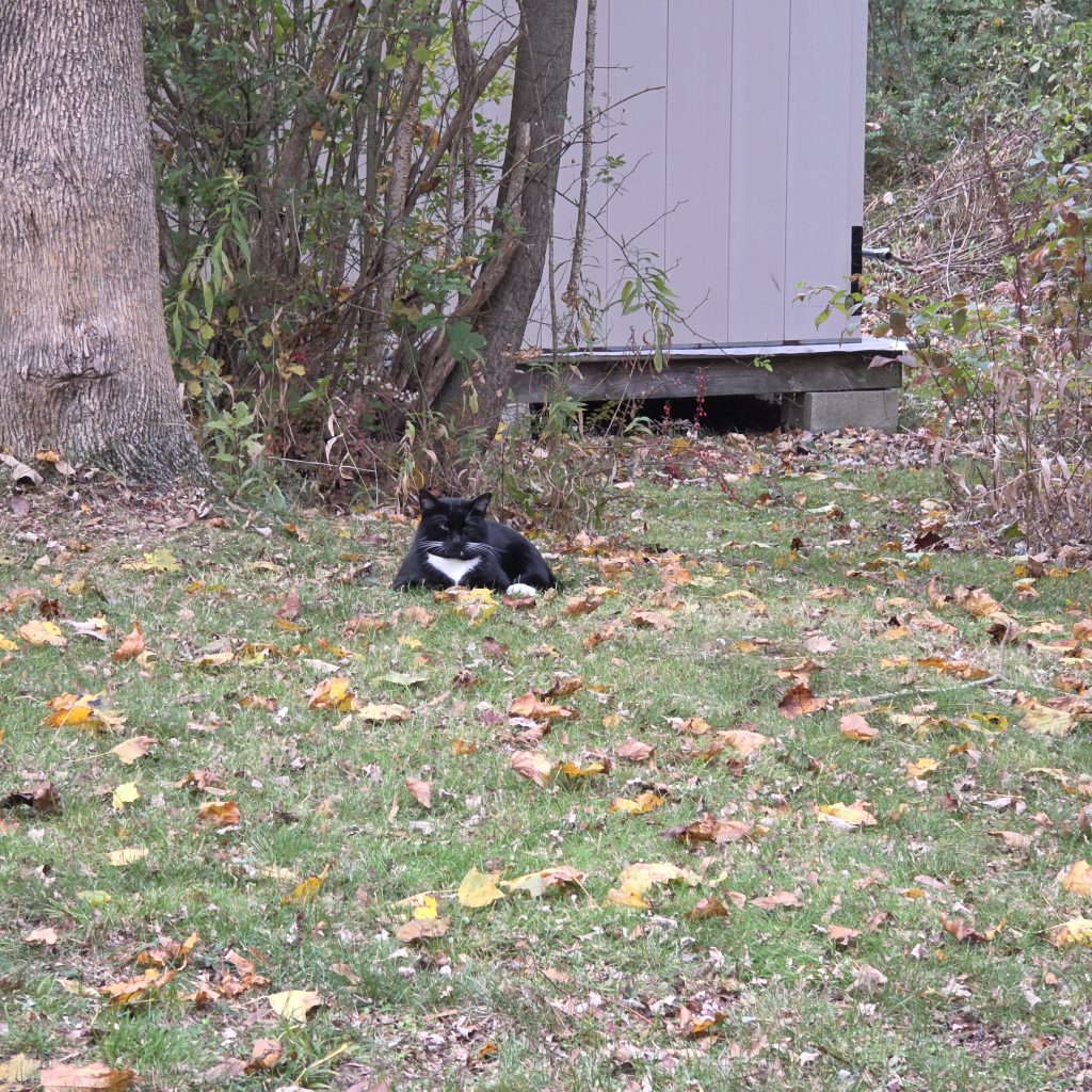 This sweet tuxedo is Mittens. He showed up about a year or two ago. It is nice to still see him. My other ferals disappeared or moved on to other places. I hope they are doing well, and I miss them so much. I noticed Mittens has a possibly healed injury to his leg, like it’s possible it broke or something, because I can tell when he is walking, he doesn’t really bend it like it should bend, it doesn’t stop him from running around, he seems okay with it, and doesn’t seem to be in pain. If I could take him to the vet to check him, I would, but these two would be impossible to take unless I put them in a trap LOL. I know that Lilo is fixed. I would like to catch Mittens and get him checked, but with the cold season coming in, I think I’ll wait until warmer weather.